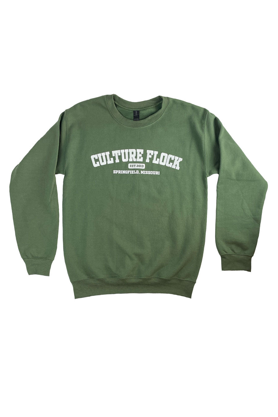 Get cozy with this Culture Flock Collegiate Crewneck! Show your love for your favorite brand with this comfy, muted green crewneck. Perfect for lounging or a casual day out. Score a major style and comfort win with this must-have clothing item.