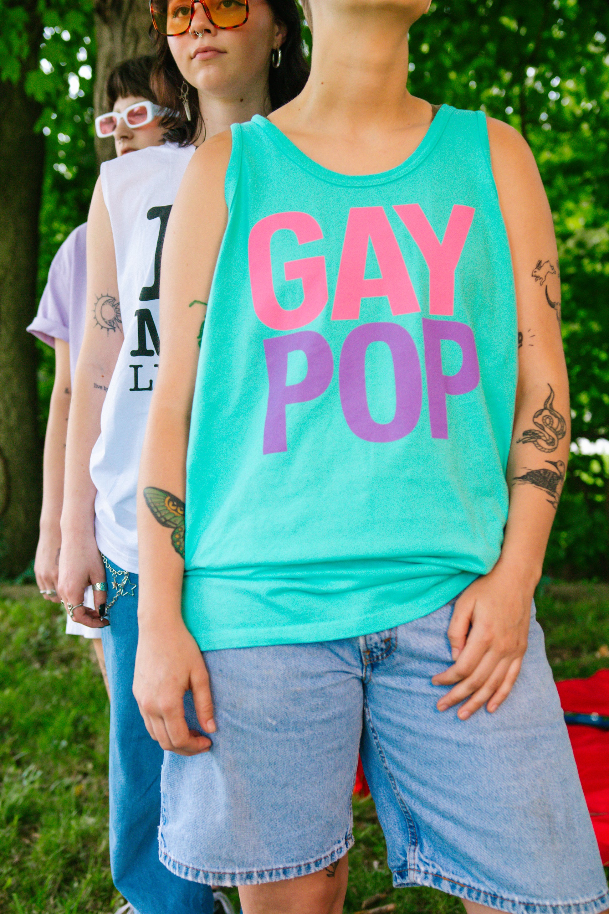 Printed on a unisex 100% cotton, garment-dyed tank top in mint. Perfect for the girls, gays, & theys.
