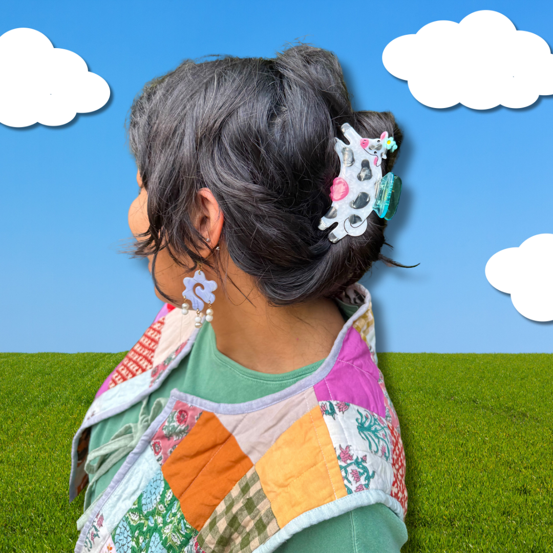 These durable hair clips are made from eco-friendly cellulose acetate. They are perfect for spicing up any outfit. They are 2.25 inches long and 4 inches wide. These hair clips were designed by us in Louisville, Ky.