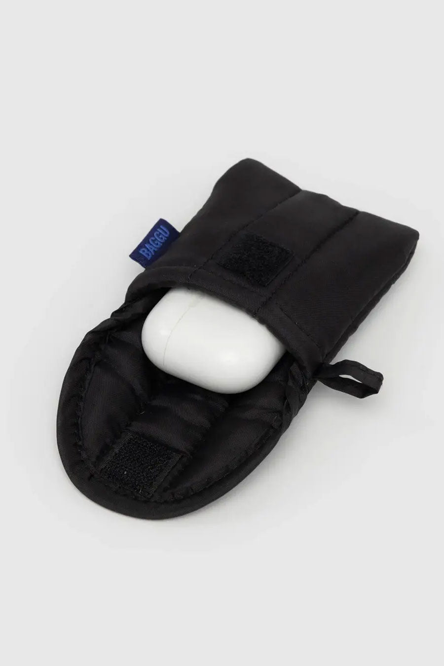 A quilted home for your earbuds, lightly padded to protect them from scratches and dirt.
